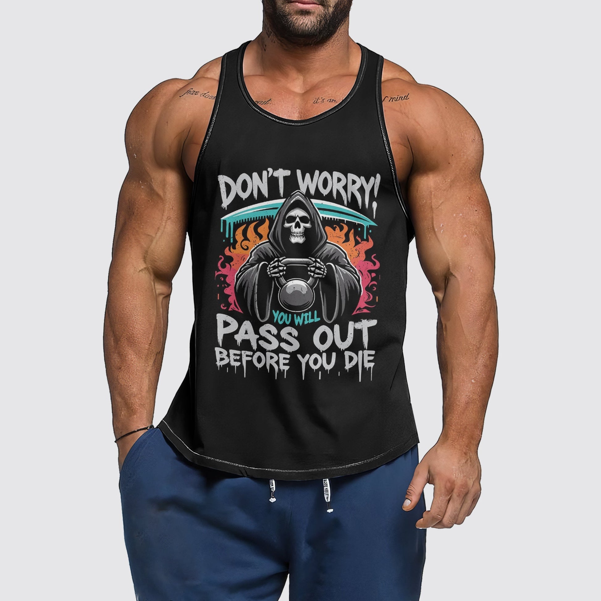 Elevate your gym game with our Men's Gym Tank Top! Crafted for comfort and breathability, it offers unrestricted movement and support for intense workouts. Perfect for any fitness enthusiast, it's a must-have addition to your wardrobe!