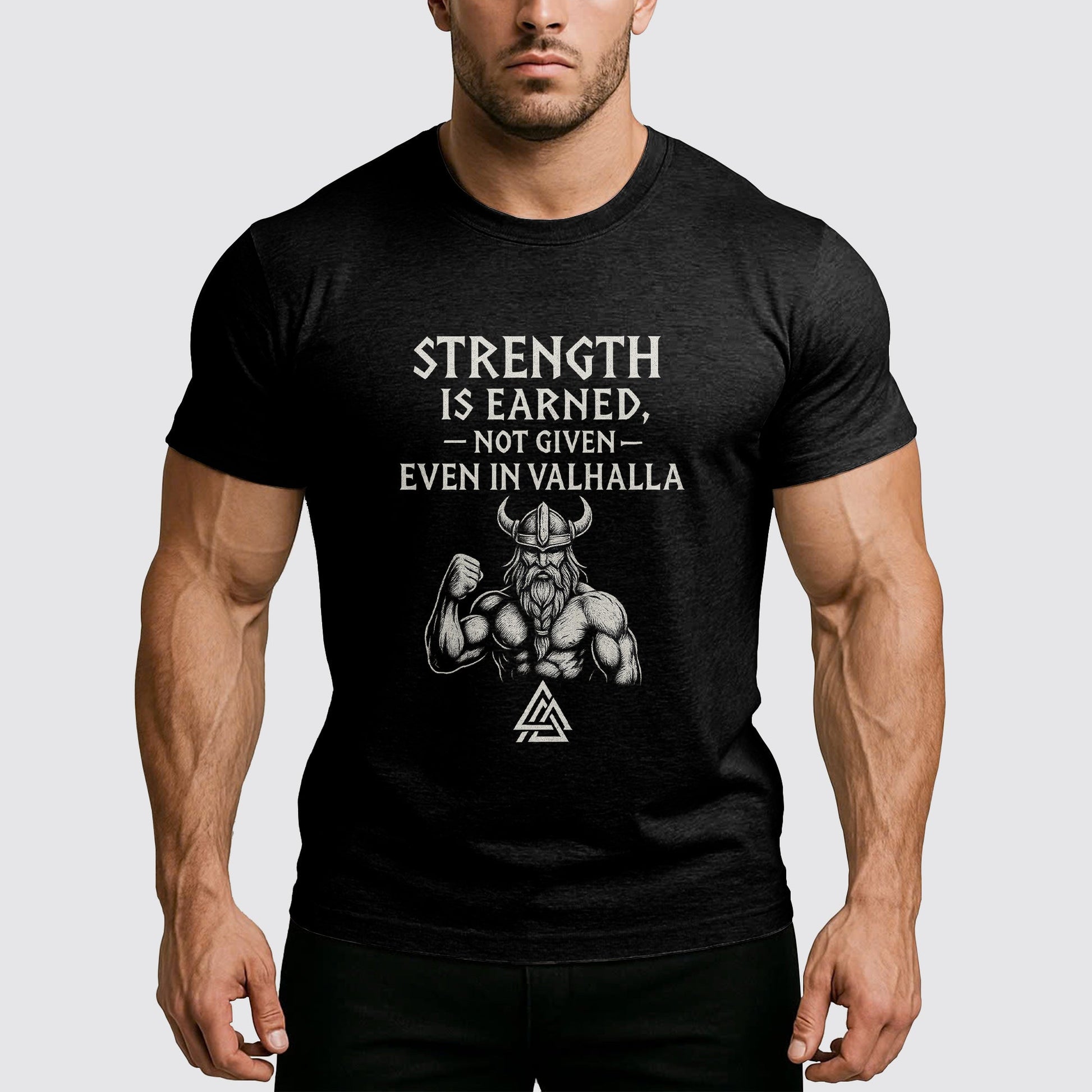 Crafted for those who lift like legends and grind with purpose, this tee combines Norse-inspired design with bold motivational energy. Whether you’re chasing glory in the gym or conquering daily battles, wear the strength of the Vikings on your chest.